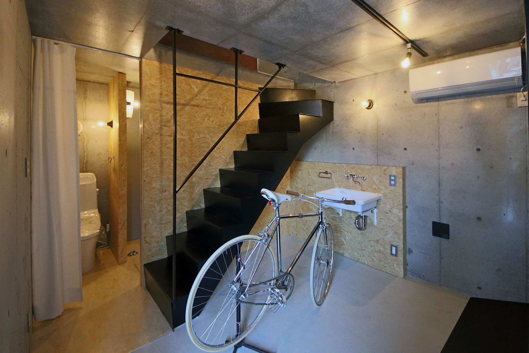 ROOM1~ROOM3(1-2階)はコンクリート床の土間仕様で、アトリエやバイク置き場などでも利用できます。